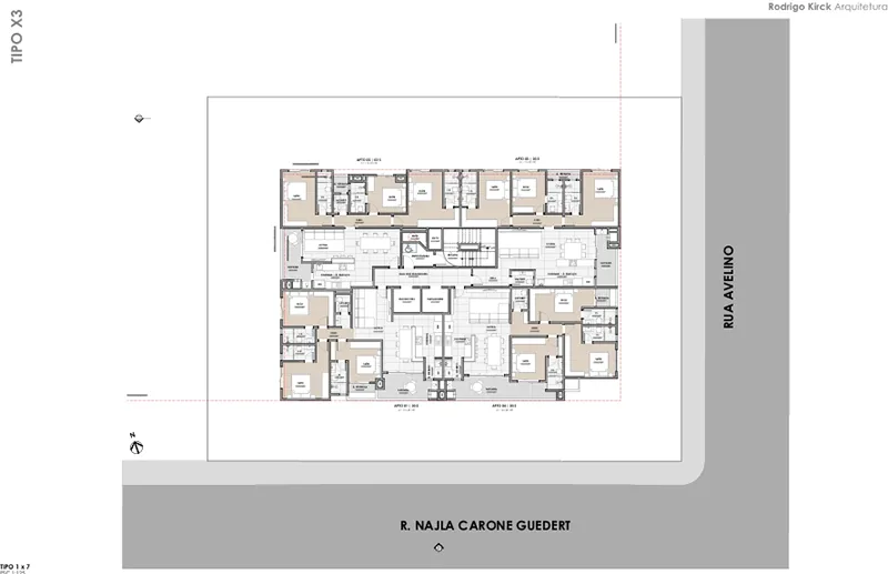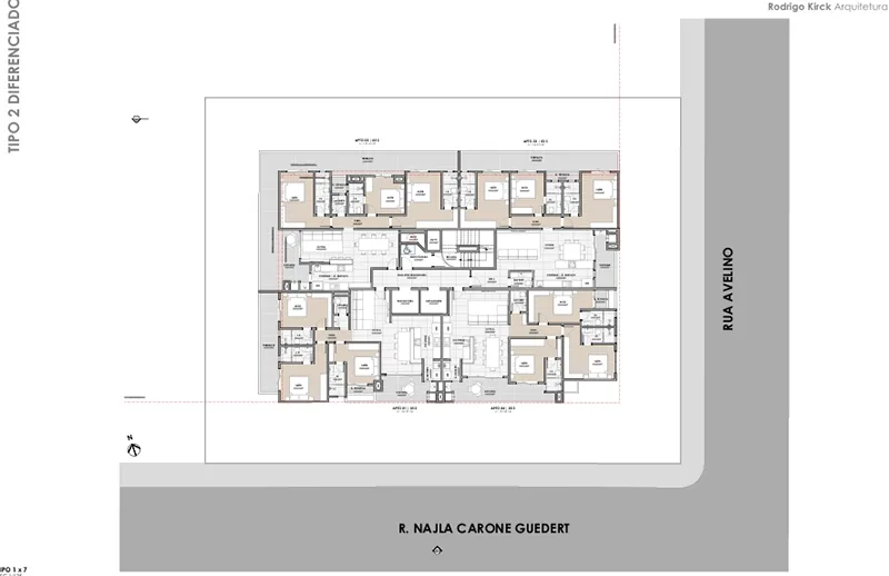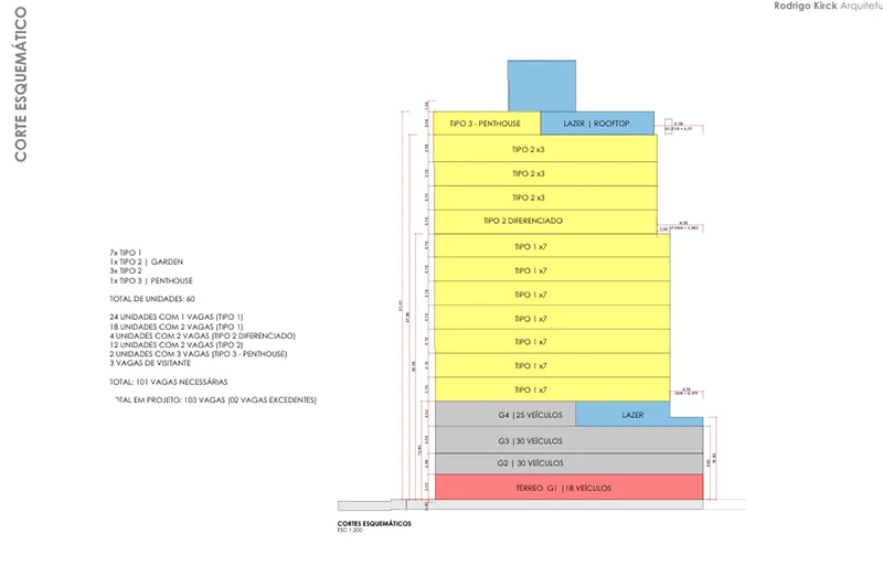 O empreendimento conta com 42 apartamentos de 2 e 3 dormitórios (todos com suítes), 17 unidades com 3 suítes nos pavimentos superiores e 2 Penthouse sofisticadas no rooftop, atendendo a diferentes perfis de moradores.