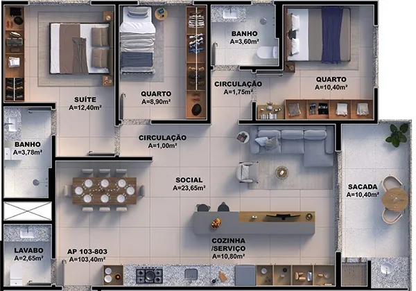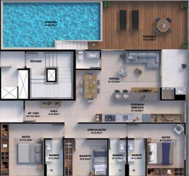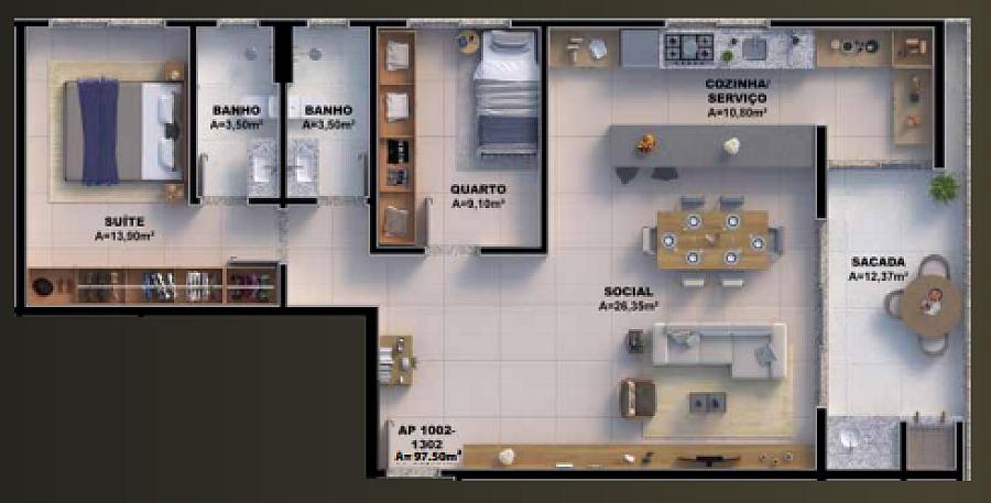 Porcelanato 80x80 ou maiorPersianas automatizadas nos dormitórios